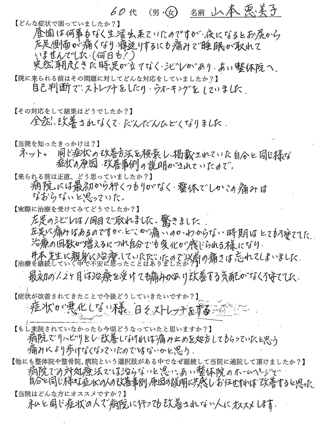「眠れない程の痛みが良くなりました」